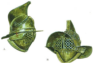 A 色雷斯式角斗士的头盔 B 萨姆耐特式头盔