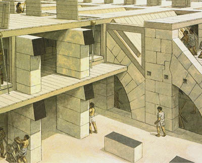 罗马的混凝土(opus caementicium)最早出现在公元前3世纪,与现代混凝土不同,它是用火山灰制成的泥浆、碎石或砖混合搅拌而成,按古代的标准算是相当牢靠,而且可以用在水下。当建造拱顶时,混凝土里不放普通的石灰石,而用火山浮石,火山浮石里面有许多空泡,可以大大减轻房子上部的重量。