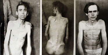 照片中的囚犯骨瘦如柴,肢体布满伤痕。他们受到了英国士兵的拷打和其他折磨,忍受几个月的饥饿,而且不允许囚犯睡觉,英国士兵甚至用螺丝钉残害他们的肢体。这些囚犯并非纳粹分子,而是被怀疑支持前苏联而在1946年被捕。