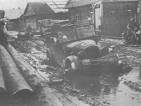 苏联的秋天,道路泥泞,给德军摩托化部队带来了极大的困难