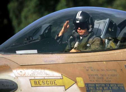 资料图片:拉蒙1981年驾驶F-16战斗机的照片