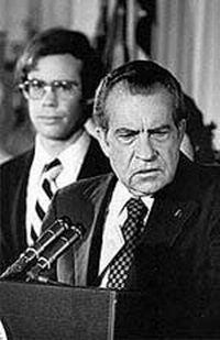 1973年3月,一名被告为了免于被判长期*,供认了有人对他施加*压力,使他在审讯中作了伪证,于是掩盖的堤坝被一大批新揭露出来的材料的狂流冲塌了。尼克松不得不宣布由司法部负责调查水门事件,参议院水门事件委员会决定把听证会用电视向全国公众转播,使水门事件在公众中激起了更大的*波澜。迫于形势,尼克松总统在8月8日宣布辞职,成为美国历史上第一个被迫辞职的总统。 |