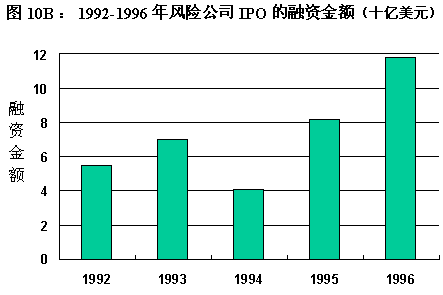 1996年由风险投资支持的公司的上市数量创历史新高,有261个公司上市,共融资 118亿美元,平均每个公司融资4500万美元。