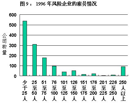 这些风险企业开始只雇佣少量的高级技术人员从事研究和开发工作,随着企业的成长,逐步录用制 造、销售、营销和其他专业人员。有关资料表明,风险企业在创建八年内平均雇佣184人。雇员平均工资 是全国平均值的二倍($62,000 : $31,000)。