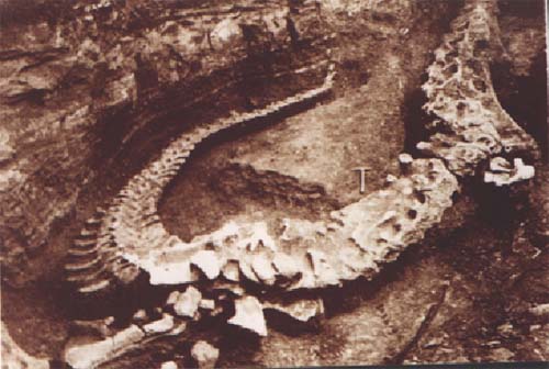 图2 在重庆合川市太和镇鼓楼山上马门溪龙的埋藏现场