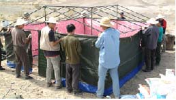图14 晚饭后的营区 图15 搭建做饭、储物的帐篷