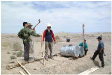 正是由于戈壁滩上强劲的风,在肃北地区广袤空旷的大地上,公路两旁有排列整齐、规则的电线杆,而且规模成片成群,在电杆的顶部都有转动的风轮,景象蔚伪壮观,在人迹罕至的地方,这不得不说是一道风景,同行的人中,不时有唏嘘声。这些就是用来为当地百姓发电照明的风力发电装置,在西北地区这种景致十分普遍,他们就是凭借大自然的唯一恩赐创造着这里的历史,靠这种风力发电,来满足他们日常生活和工作所需,不仅环保,而且还省钱。这或许就是戈壁劲风给他们带来的益处,惟有这可以安慰一下长期饱受风沙之苦人们的心灵!