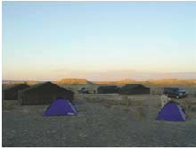 图12 野外宿营的帐篷(晨景) 图13 夕阳西照下的营地