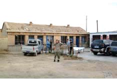 图5 到达马鬃山镇的一家家庭旅店 图6 装载货物的卡车途中陷入沙窝中
