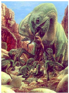 图2:早期对窃蛋龙生活习性的认识 图3:窃蛋龙是在保护子女,而非捕杀