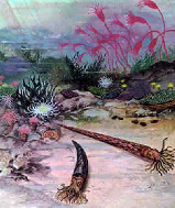 5.海百合时代的海洋景观 6.形成化石后亭亭玉立的海百合
