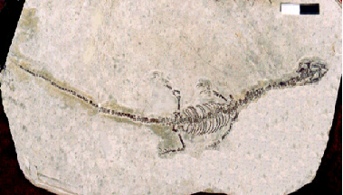 在我们所见到的中国水生蜥的化石里,一个共同的特点是:化石存在的石板是分布均匀的火山灰经过湖泊沉积形成火山凝灰岩。在保留中国水生蜥的石板上还能不时看到有数量和长度不等的狼鳍鱼化石,它们的形态非常接近自然。这些现象说明了中国水生蜥以及同时期的这些生物的死亡是一场突发性的火山事件造成的灭顶之灾。在岩石遗存的证据里,我们能够找到足够的理由。当时,由于频繁的火山爆发,导致了大量的火山灰不断喷发,同时还含有各种有毒气体,也改变了地球表面的温度,致使温度不断上升,生态环境发生了严重的破坏和恶化,大批生物集群死亡,火山灰的快速沉积和生物遗体的迅速埋藏,留下了成千上万个镶嵌在岩石中的静止画面,清晰而完整地展现给后人。