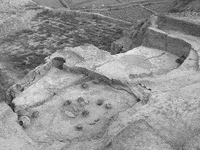在西区继续扩大发掘的地点(遗址Ⅷ区),2004年的发掘中,曾发现4座房址(F23、F24、F26、F27)并列成排,门皆向东,与F25方向相对。但这次在东、西和北面的扩大发掘中,新发现F28和F29,分别位于东西两端,门皆向南,而且发现F23、F24与F26、F27虽是并列一排,但却表现为有土墙相隔的不同院落。这些房址方向不同,布局上形成了多个独立的单元,既相关组合,又各自分隔,呈现出不同以往认识的全新的建筑格局。而且也同喇家遗址东区 所反映出来的环绕崖壁的窑洞式建筑格局迥异,显示出一种建筑格局的新形式。这些不同方式可能与所处不同的微地形、微地貌有关系,是齐家文化先民因地制宜采取的比较灵活的建筑布局形式,同时有可能与所处的社会发展水平和社会关系结构以及家庭家族结构也有着特定的相应关系。这个区域的发掘面积,现在看来还是不够的,很有限的,如果继续扩大发掘,这里的建筑格局就有可能更大范围揭示出来,将可以展现得更加清楚。