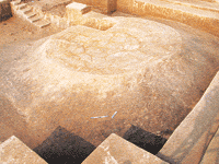在六安—潜山高速公路建设中,安徽省文物局、省文物考古研究所于去年10—12月在霍山县但家庙镇大河厂村戴家院遗址举办了全省第2期田野考古培训班,并对该遗址进行了正式发掘。发掘面积600多平方米,发现西周时期的祭坛1座以及与之相关的红烧土建筑3处、大型排房1座、木桩遗迹3个,另有大量柱洞、少量灰坑,此外还发现了较多的木头堆积、苇席及其他植物遗存等。出土了数量较多的小件青铜器、陶器,以及少量木器、石器和铸铜石范,并发现了龟甲等。