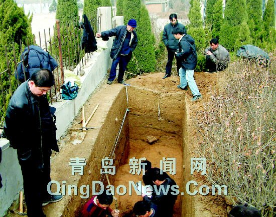 早报讯 日前,市文物保护考古研究所与李沧区文化局、李沧区文物管理所联合对十梅庵古城顶遗址进行试挖前测量时,挖出了灰陶罐碎片、鹿角和青铜器。