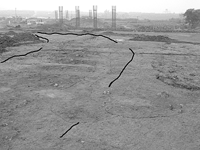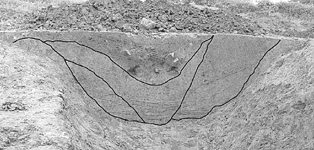 去年8月,在黄岛南营遗址发现龙山文化时期的环壕,这是继平度逄家庄后(见本报2003年4月13日1版)胶东半岛的第二次发现。该遗址隶属于山东青岛市黄岛经济开发区红石崖办事处,坐落于山隋和南营村间的高台地上,南部压于南营村下。台地高出周围地表约3—5米,南部约2公里为龙雀山,北距胶州湾约4公里。遗址大部分遭破坏,唯高台的北部尚存部分遗迹。现存遗址东西约60—90、南北约100米,面积近8000平方米。青岛至莱芜的高速公路占压遗址的北部。山东省文物考古研究所、青岛市考古所、黄岛区文物管理所联合组队,发掘了路基占压部分,揭露龙山文化时期的壕沟100多米,商周时期的灰坑10多座,获取陶、