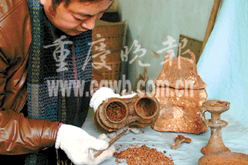 昨日,永川市文物管理所传来消息,该所在永川城区一工地发现一个明代家族墓群。罕见的是,墓内陪葬的两个谷仓陶罐竟盛满明代的稻谷,这些谷子至今约有500年。