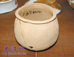 遗址中出土的陶器。