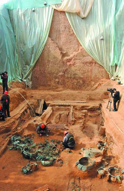 关注古墓发掘进展 上蔡郭庄楚墓有望今天开主棺