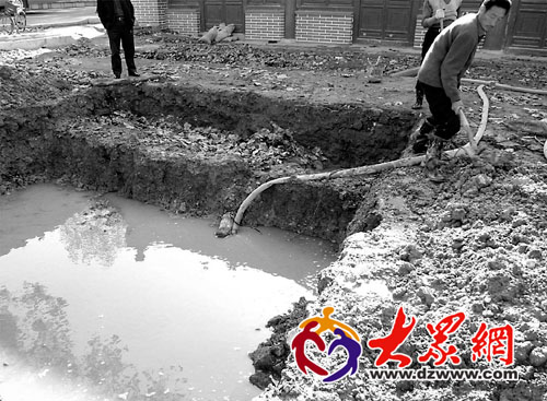 新发现的古泉池,潜水泵刚停几分钟,里面便溢满了水。左庆 摄
