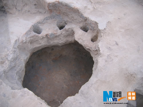 据了解,这处遗址位于内蒙古赤峰市松山区上机房营子村北的山坡上。此次考古发掘负责人、吉大边疆考古研究中心陈国庆教授介绍说,这座陶窑约存在于3500年前,平面呈圆形,窑壁呈弧形,估计窑顶为穹隆状。窑室直径1.25-1.37米,窑壁残高0.12-0.56米,沿窑壁边缘均匀分布4个圆形火眼,比较粗,直径在0.2米左右。火膛较大,全长2.32米,在火膛内发现大量的红烧土块、灰烬、炭渣、黄土及陶片等杂物。火口位于窑室的西南,宽0.5米,高0.38米。自火口处向下呈斜坡状伸向火膛。
