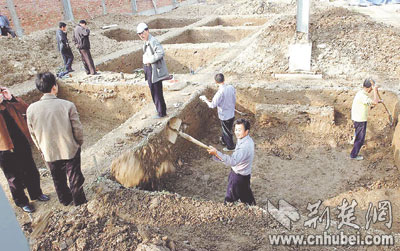 昨日下午,考古人员在襄樊市南漳县城关镇花石桥村开始发掘一大型明代遗址,并出土了大量珍贵的文物。