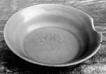 龙泉窑青釉刻花碗(图一),高3.8、口径11.7、足径6.6厘米。器为侈口,斜宽折沿,斜直腹壁,外壁略弧,浅腹,平底,矮圈足,胎质白中略泛灰;通体施青釉,釉汁纯净,施釉精细,釉色青中闪绿,器面晶莹光亮,温润似玉,是一件不可多得的艺术佳作。此碗内底有一划花折枝莲花,刻划精细,线条流畅,花瓣排列严谨规整,圈足内底施有青釉,外有烧制时遗留的涩圈,无釉呈铁锈红色。