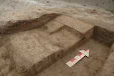 在大型建筑的南部“窄墙”处,发现数处宽0.7~1.7米的缺口。在这些缺口当中,有的还发现有呈斜坡式的碎陶片通向场外,或许是“门道”之类的出入口。