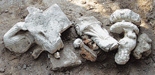 这批文物都出土于一个约5米见方、1.7米深的灰池内,清理工作历经一个星期,出土文物60多件,按质地分有石、陶、铜、玉等种类,时代跨度从汉代直至明清。