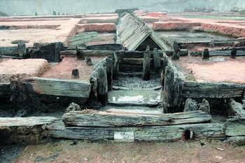在坡子街发现的南宋时期的地下大型木结构建筑遗址。图片由市文物考古研究所提供