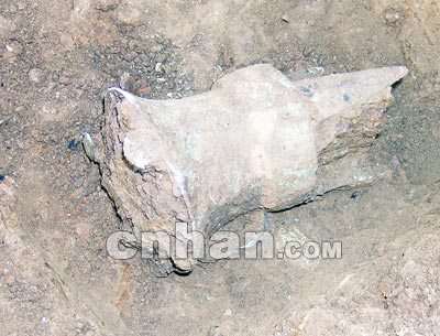 杨家嘴M16铜斝出土情形。