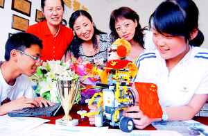 7月12日,代表我国参加在美国亚特兰大市举行的2007RoboCup世界杯青少年组比赛的哈尔滨市香坊区文化学校师生回到冰城。她们在本次比赛中荣获了机器人舞蹈比赛金奖。