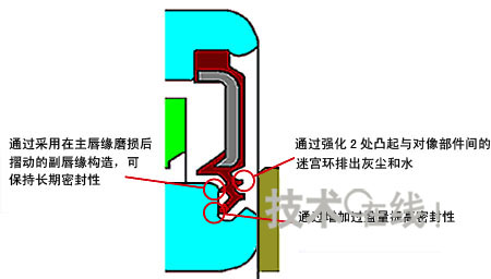 ... RM系列通过增加过盈量提高了密封性。另外,密封唇缘还采用了M字形双重构造,可长期保持密封性。而且还在密封唇缘的2个部位采用了凸起形状,确保了防水性。