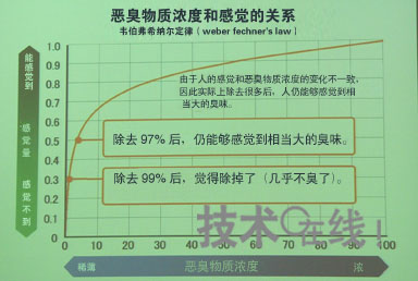 . 图2:除去97%恶臭物质之后,仍然能够感觉到“有臭味”。除去99%后,终于感到“几乎没有臭味”。