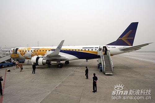 EMBRAER 190型喷气式飞机亮相北京首都国际机场(钱亚森/摄)