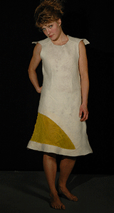 乔安娜·波哲斯卡(Joanna Berzowska)教授及其同事将会于明年在澳大利亚一个称为reSkin的工作室讨论这些个性衣衫以及有关“衣着技术”的其它例子。波哲斯卡教授的一套称为Kukkia 的“花衣”,衣领两侧镶着一些由毛布和丝绸制成的花,它们能通过缝入衣服的特殊电子装置绽开和合上。波哲斯卡在蒙特利尔康科迪亚大学任教。她说:“我真的想要设计出这些具有个性的衣服,它们的一举一动几乎同动物无异。”