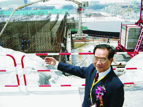 中国首座自建核电站总设计师欧阳予院士在竣工验收现场向来宾介绍说,秦山核电二期扩建工程设备国产化将提高到70%以上。(潘锋/摄)