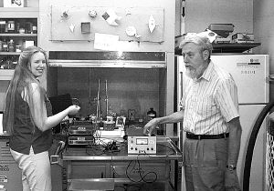 15年前,两位化学家观察到了“冷核聚变”现象,不过由于当时的实验存在一些缺憾,致使其他科学家未能得出相同的实验结果,从而有可能改变人类命运的科学发现便被美国能源部一纸报告彻底否定,打入冷宫至今。最近,美国能源部拟组织专家对“冷核聚变”进行重新评估,最迟将于2005年初拿出结论。上图:波特兰州立大学教授约翰·达西和助手在实验室。