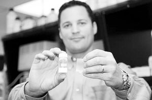图为胡克手持新型反渗透膜和纳米复合材料。