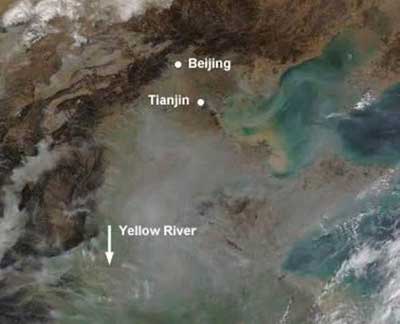 烟雾很有可能是中国以煤为燃料的发电厂造成的,烟尘是家庭住户火炉排放的,而汽车尾气和污染则是来自北京和天津附近地区。美国宇航局戈达德太空飞行中心“Terra”计划科学家乔恩·兰森说:“这种烟雾情况在中国这部分地区很普遍。”
