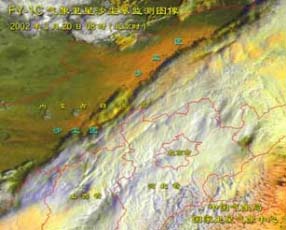(气象卫星监测到的北京遭遇沙尘暴云图)