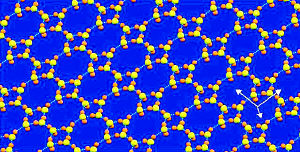 最近,中科院物理所王恩哥小组在这项研究中取得了重要突破。他们在近几年对水的系列研究工作基础上,首次证明存在一种稳定的二维冰相。它是由四角形和八角形的氢键网格交替组成的,与一种特殊形式铺成的地板图案极其相似。研究人员把这种完全不同与体相的新的冰结构命名为镶嵌冰(Tes鄄sellationIce)。进一步的分子动力学研究还确认了该二维冰相中存在两种不同的氢键,即四角形水环是由强氢键作用组成的,而相邻的四角形水环之间通过弱氢键作用连接成的八角形网格。在这个水的氢键网络结构中,所有的水分子都被四个氢键所饱和,完全满足形成冰的两个基本条件。有趣的是,该研究表明这种镶嵌冰可以在室温下稳定存在。这是人类首次发现一种化学键构形上完全不同于已知体态冰的新的二维冰结构。专家认为,这项成果不但丰富了人们对冰的认识,而且为人们深入