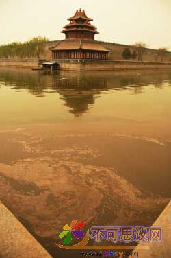 故宫护城河蒙上了一层黄土 新华社发【权威发布】