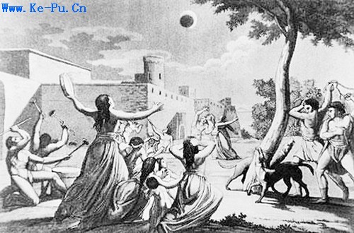 相关专题:7月22日长江流域日全食 作为罕见的天象,在不知成因的古代,日食的发生会让人极度恐慌,因为太阳如果从此消失的话,大地上的生命将注定灭绝,所以古代几乎所有的民族都认为日食是一种凶兆。后来人们从经验上知道日食发生的时间很短,太阳不会永远被“食”,但仍然认为日食是老天对人间的“严正警告”,直到人们彻底认识了天体的运行规律后,日食才卸掉这背了几千年的“黑锅”。下面,通过几个小故事,我们看一看古人怎样认识日食,以及这些认识又是怎样逐渐进步的。