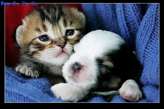 图23、小猫和小狗“肩并肩”。