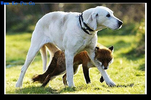 图25、猎狐犬和狐狸这对“冤家”竟然和平相处。(中国国家地理网 张晓来)
