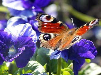 植物温室内盘璇。这些蝴蝶不是自己飞过千山万水,千里迢迢来到德国的,或是直接搭乘飞机来德国的。它们其实是台北市立动物园昆虫馆提供的蝶蛹,以航空邮包的方式,分批空运来德国,然后在慕尼黑的植物园内羽化成蝶。