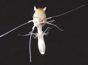 照片上的这种生物就像明虾样子的甲壳类生物,研究人员将其称为“片脚类生物”。这种深海生物发现于北大西洋的马尾藻海水下5公里的地方,它的外形就像外星电影中的生物。这种深海生物靠捕食同类或死鱼尸体生存。