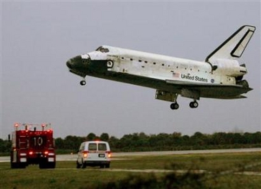 4时26分,“发现”号航天飞机发动机点火,脱离绕地球飞行轨道,开始减速下降。在成功穿越地球大气层后,&ld < 1 > < 2 >