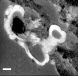 这块陨石是2000年1月18日掉落在加拿大西北部塔吉斯湖畔的,可以认为陨石中的有机物是在没经过地球环境污染的状态下获取的。中村研究员等人的研究小组通过电子显微镜对陨石仔细进行了观察,发现了26个球形中空的有机物。在这种有机物中,存在元素氮15,比普通的氮元素多了一个中子(元素周期表中氮的原子量为14,原子量等于中子数加上质子数)。存在的氢元素也比普通氢元 < 1 > < 2 >